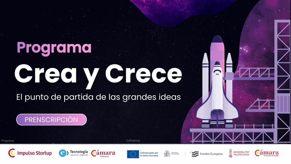 “Crea y Crece” es un programa 100% gratuito, financiado por el Fondo Social Europeo y Cámara Valencia, y supone una oportunidad para que los emprendedores pasen de la idea a un proyecto real con método, apoyo experto y visibilidad ante el ecosistema.